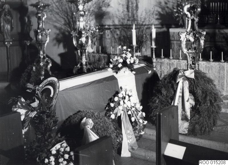 likkista, blomsterkrans, kista, begravning, blomsterkransar, gustav, interiör, begravningar, 1940-tal, 1947, kyrka, prinsar, kyrkor, adolf, prins, kistor