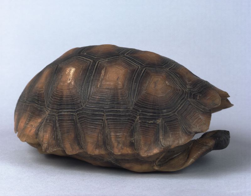 Instrument av gnidtyp av ett skal av landsköldpadda. Vid huvudändans