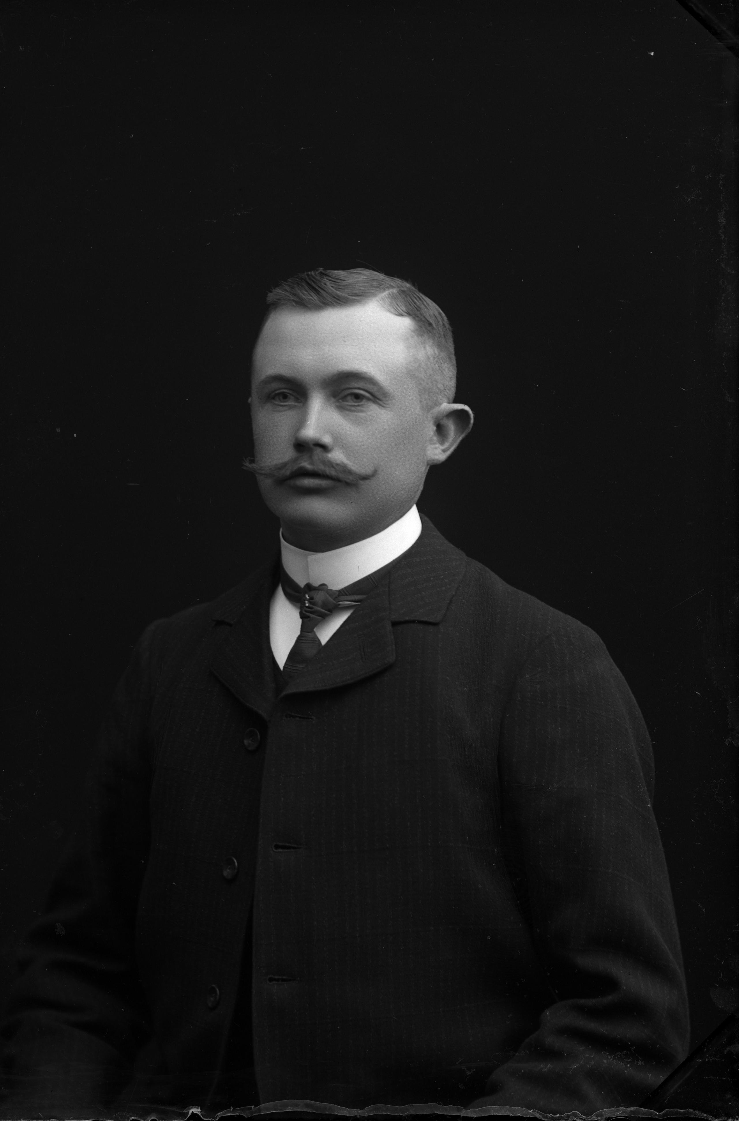Porträtt i halvfigur av maskinisten Johan Bååth.