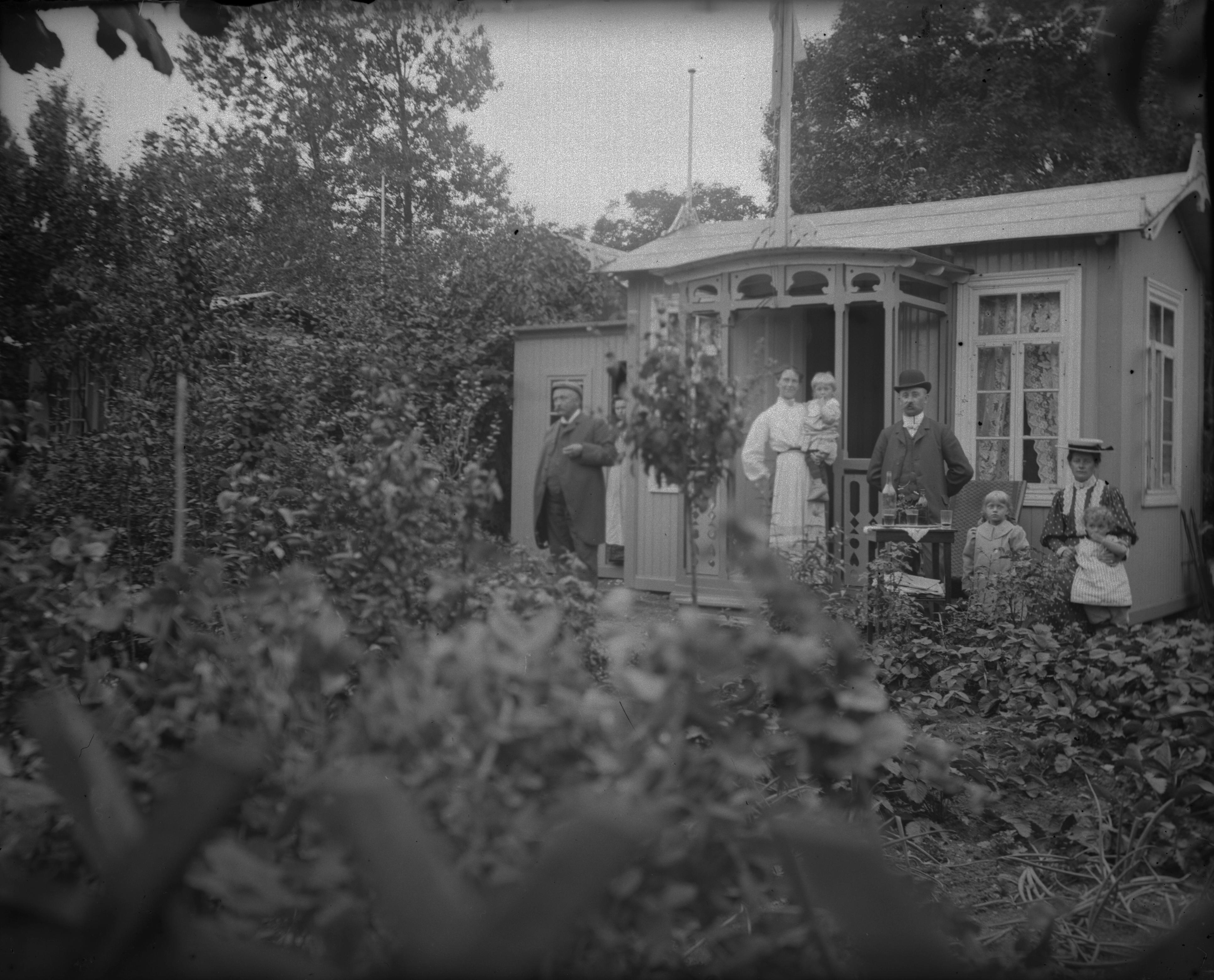 BL 000087 :: gruppbild, stuga, trädgård