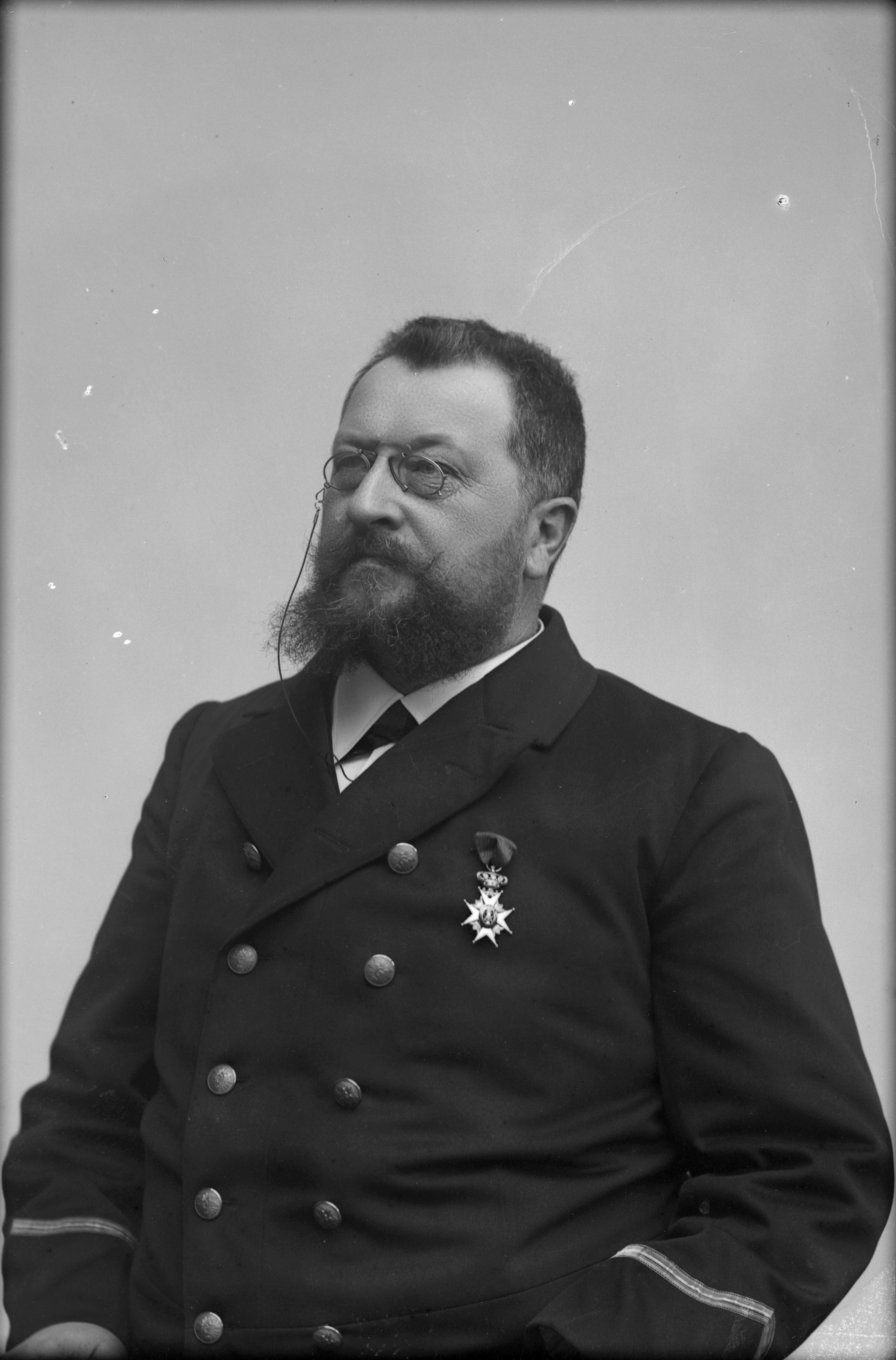 Porträtt i halvfigur av stinsen Otto Ferdinand Lenander i SJ-uniform.