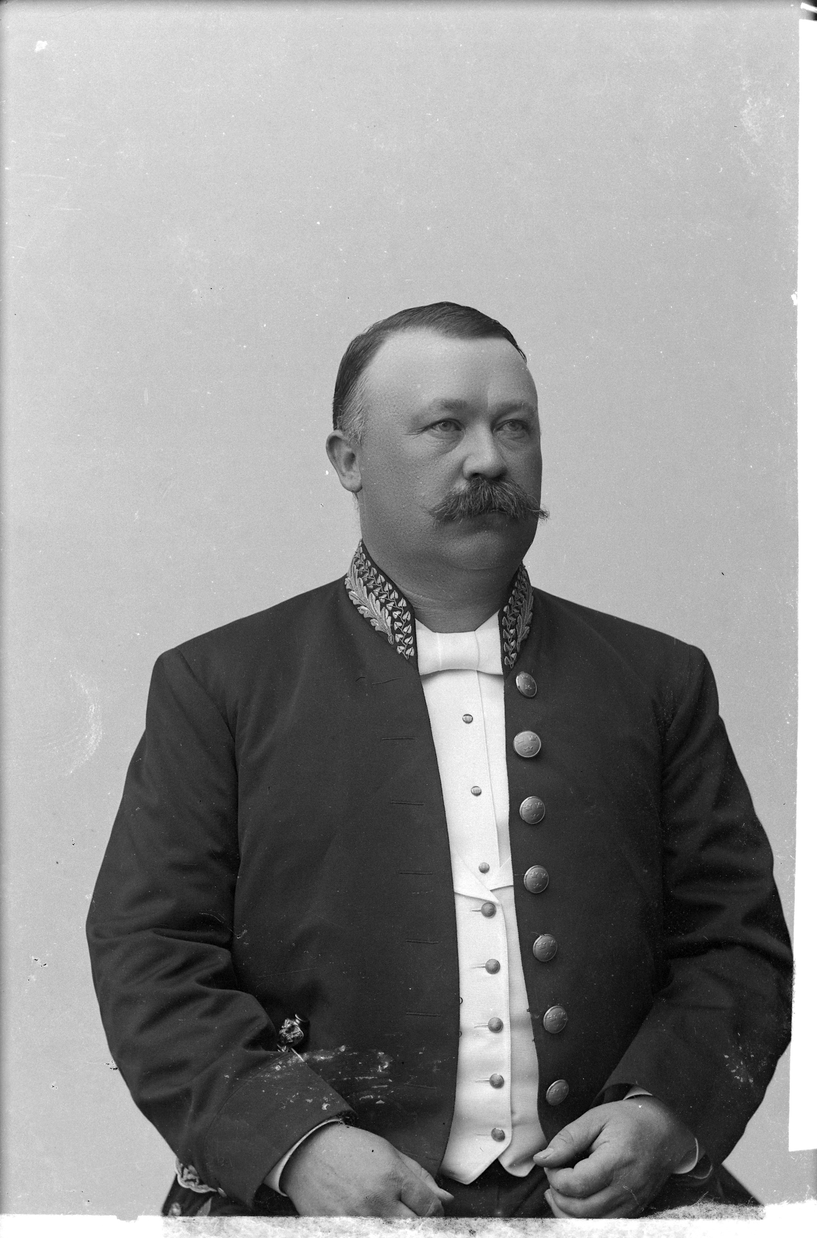 Porträtt i halvfigur av postinspektör och vice häradshövding Victor Cornelius Melander.