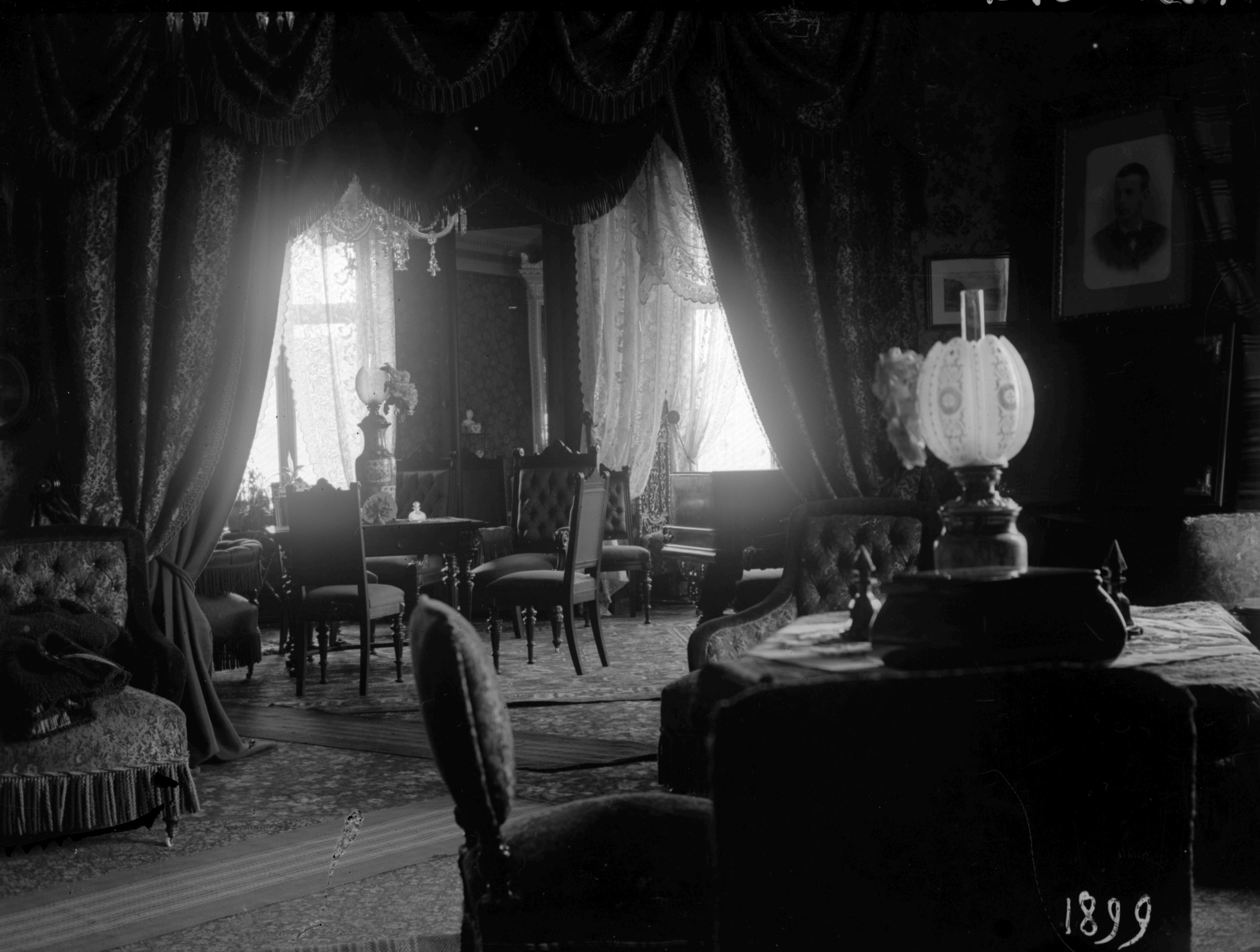Lampa, Jönsforshus, Stenmark. Kabinett och salong. 1899.