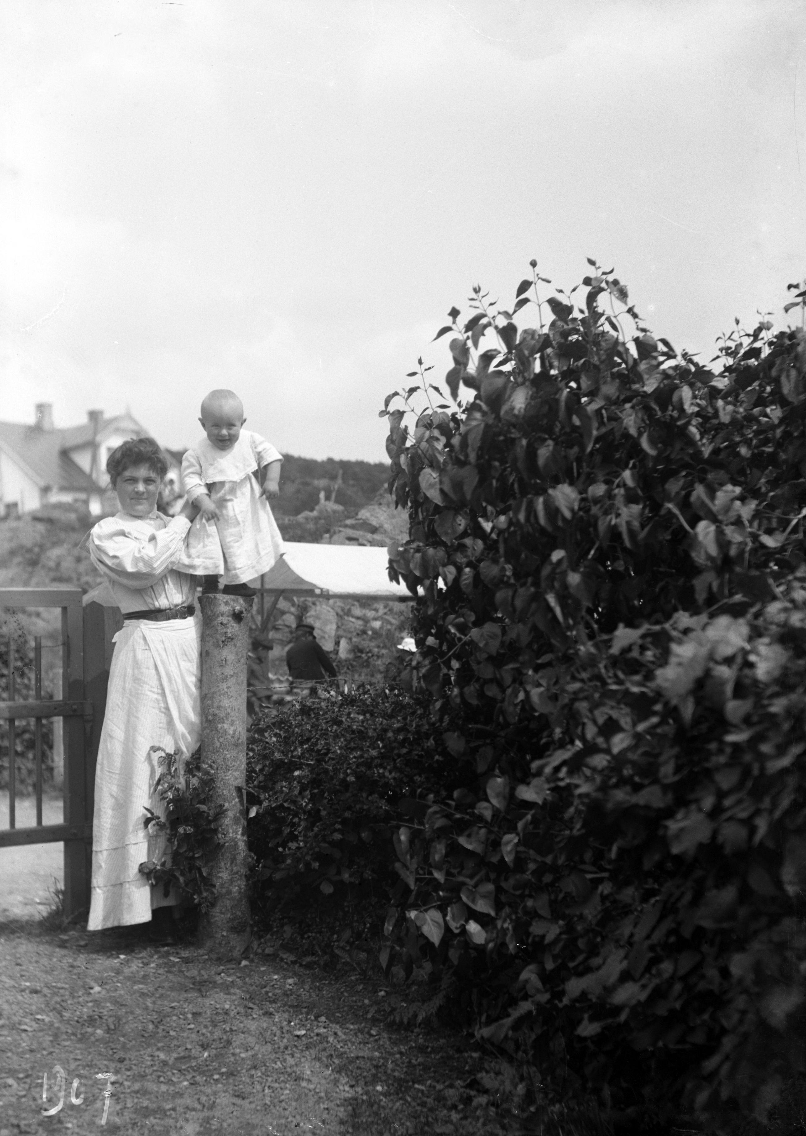 Kvinna med litet barn, i trädgården Nanny och Jonas Peter? 1907