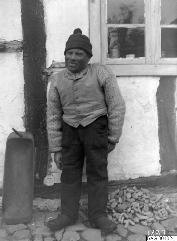 Gammal man vid hus, Jeppson. 1897.