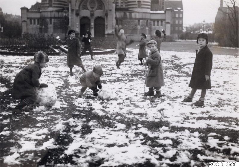 Den första snön är den roligaste, tycka småttingarna, som ses rulla snöklot och pröva skidorna. Bilden tagen vid Johanneskyrkan.