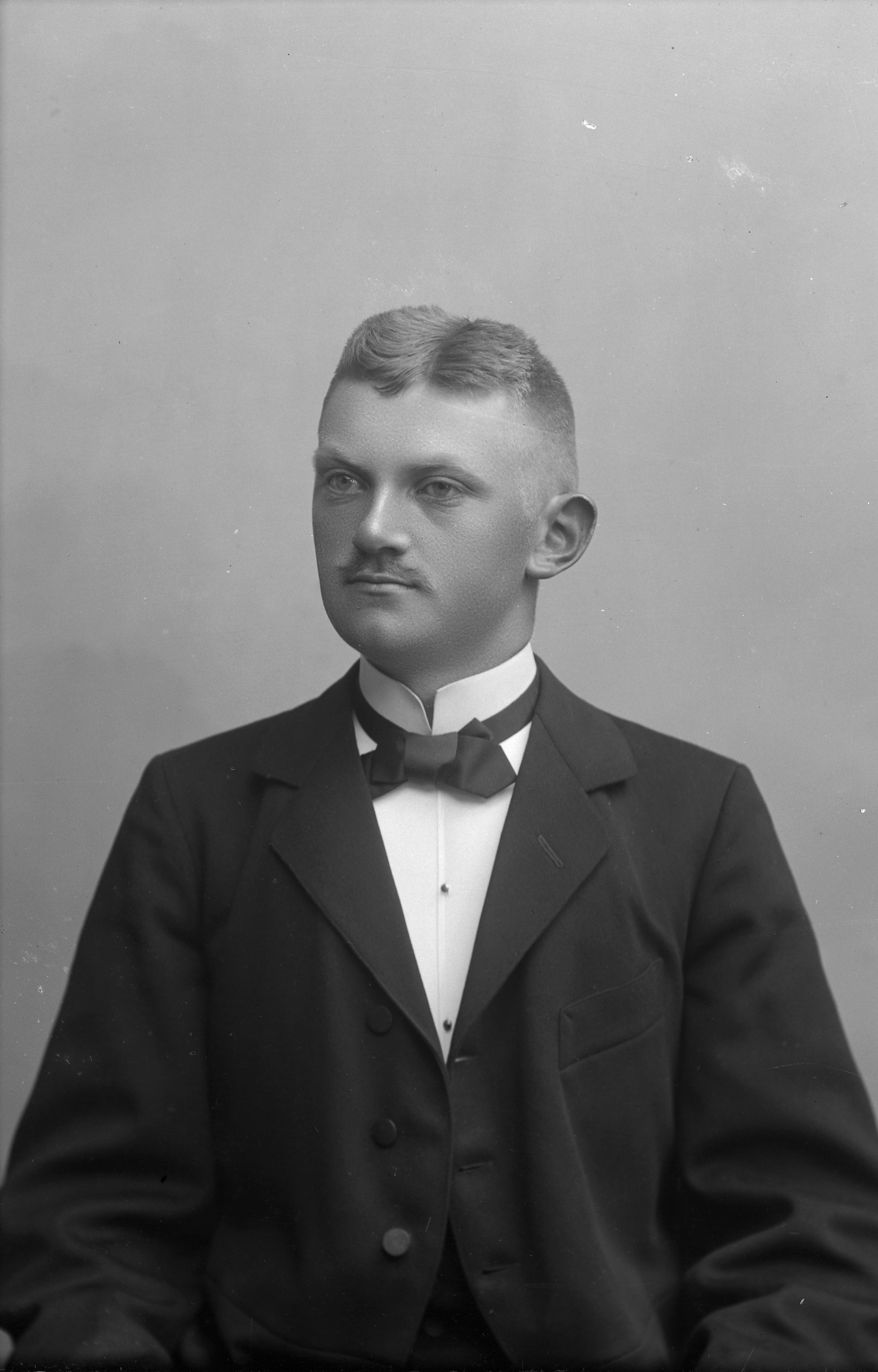 Porträtt i halvfigur av bryggeriarbetare Olof Bååth.