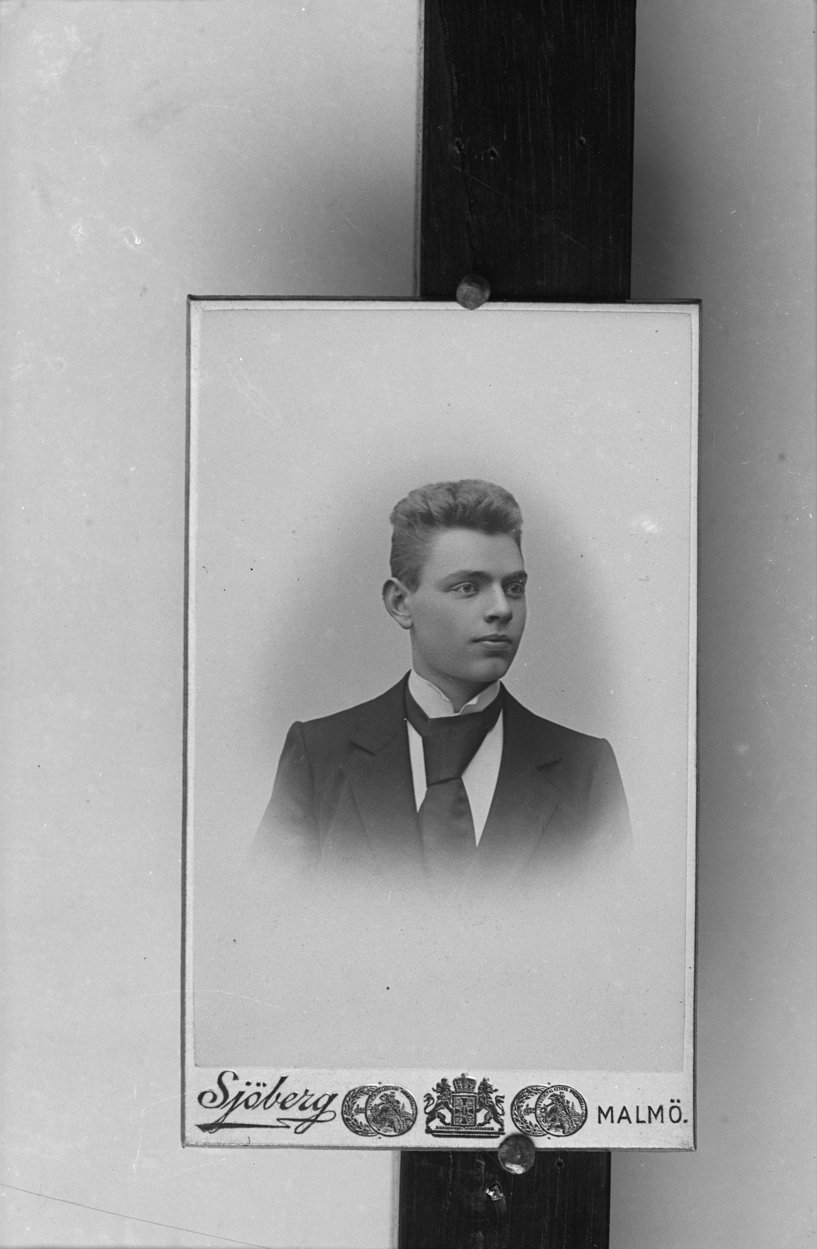 Porträtt i halvfigur av herr Jancke. Visitkort med ateljélogotyp, "Sjöberg /Malmö".