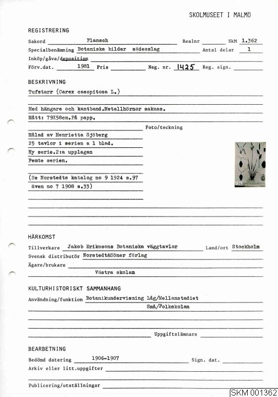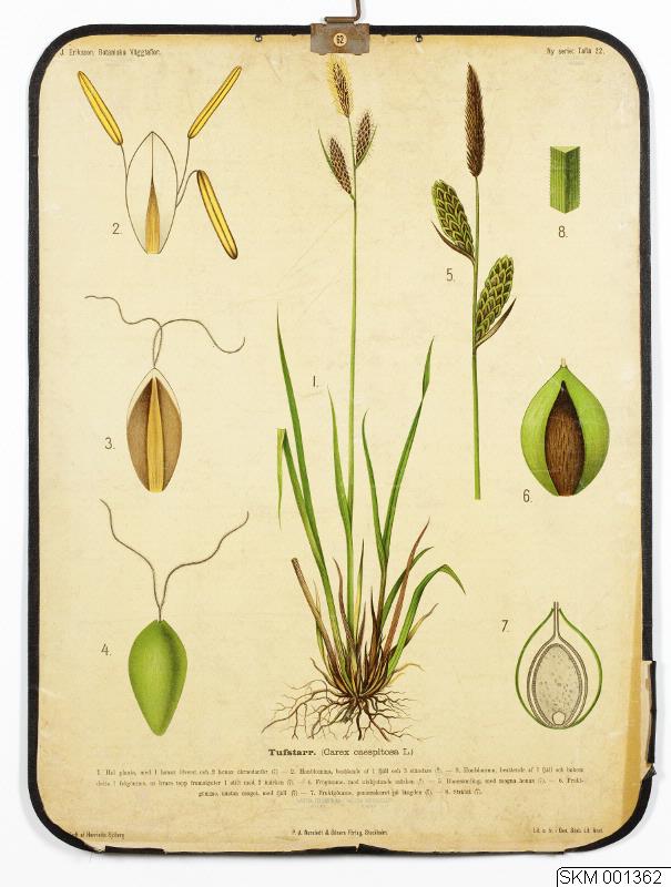 Ser: J. Eriksson Botaniska väggtaflor (ny serie: tafla): Tufstarr. Med hängare och kantband. Metallhörnor saknas. På papp.