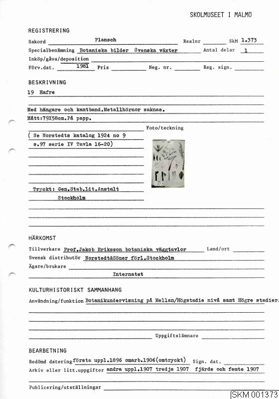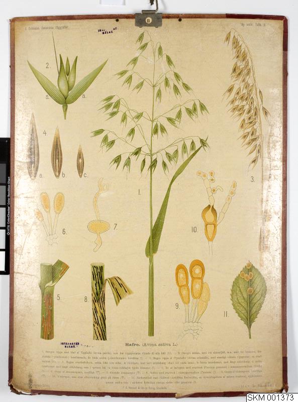 Ser. J. Eriksson. Botan Väggtaflor (Ny serie tafla 19): Hafre. Med hängare och kantband. Metallhörnor saknas. På papp.