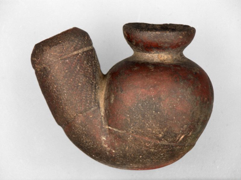 Piphuvud tillverkat i terrakotta, bestående av ett klotformat huvud och
