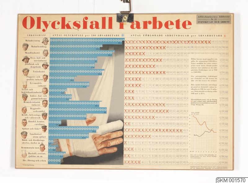 Uppgifterna från: "olycksfall i arbete år 1944", Arbetarskyddsnämnden och Arbetsgivarnas Ömsesidiga Olycksfallsförsäkringsbolag.