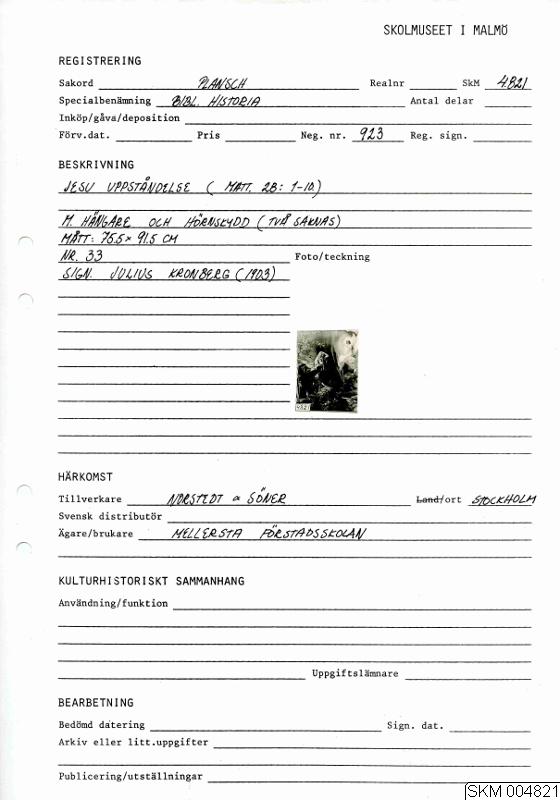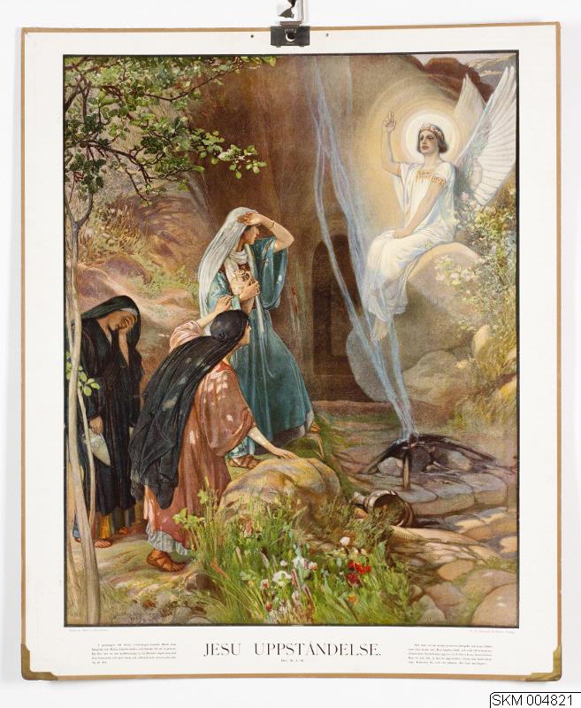 Plansch: Jesu uppståndelse, Matt. 28: 1—10. M. hängare och hörnskydd (två saknas).