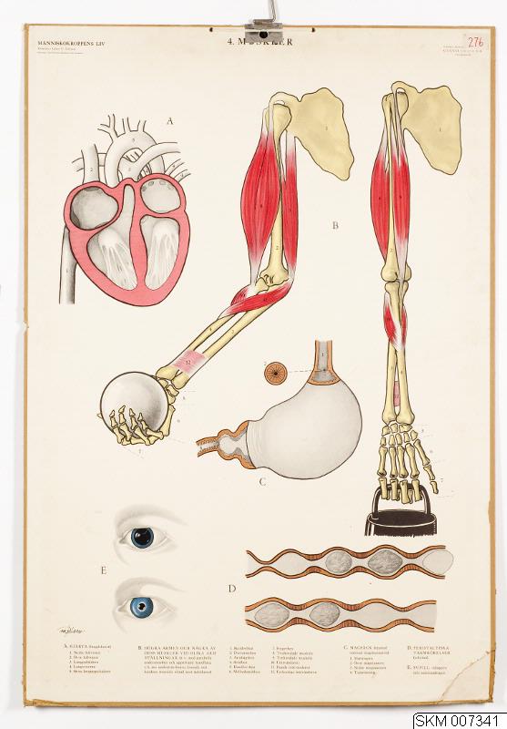 Människokroppens liv: Muskler. Med hängare utan kantband och metallhörnor. På papp. Skadad i höger nederkant.