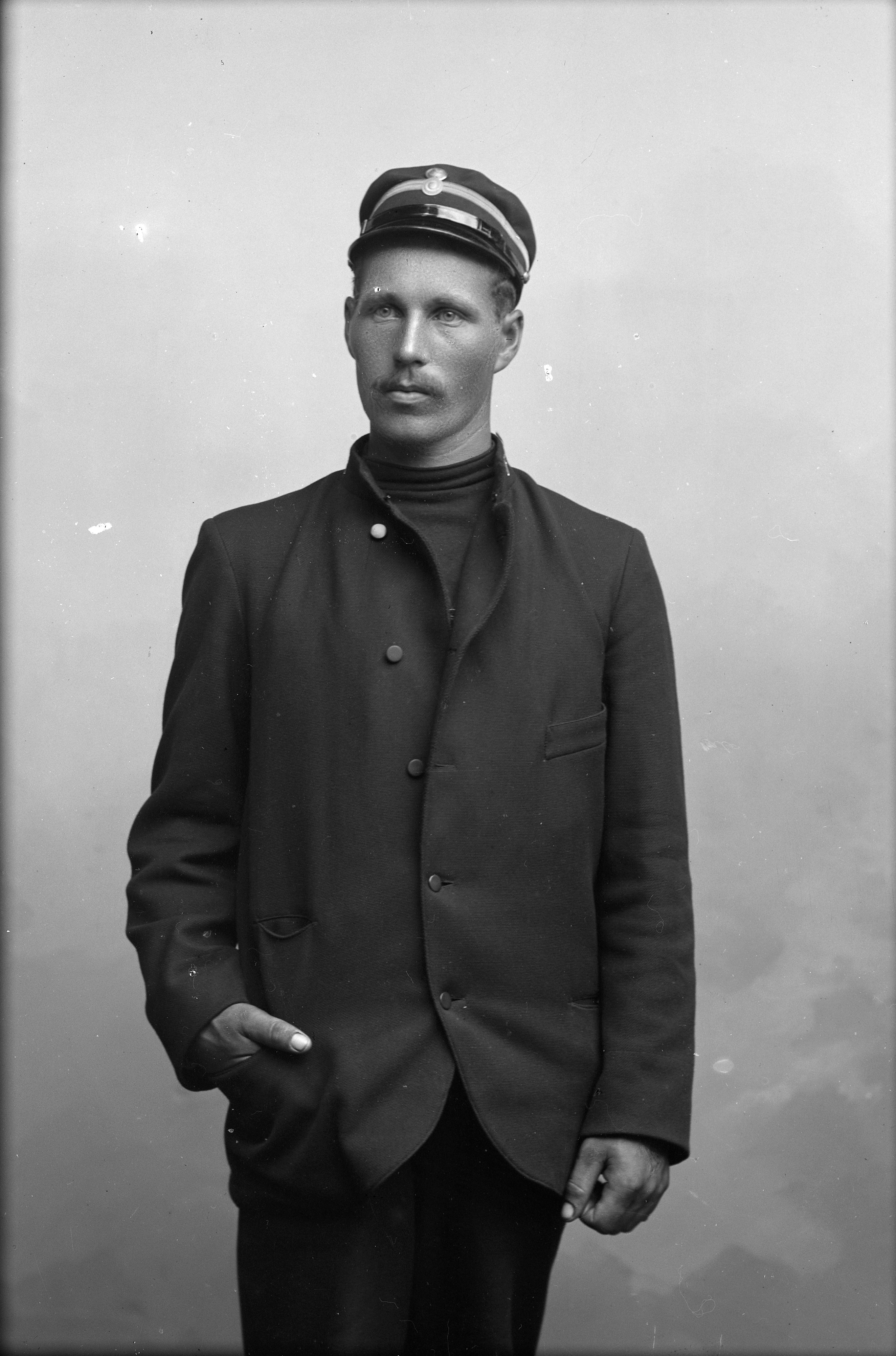 Porträtt i helfigur av fiskaren Vilhelm Andersson Sallé.