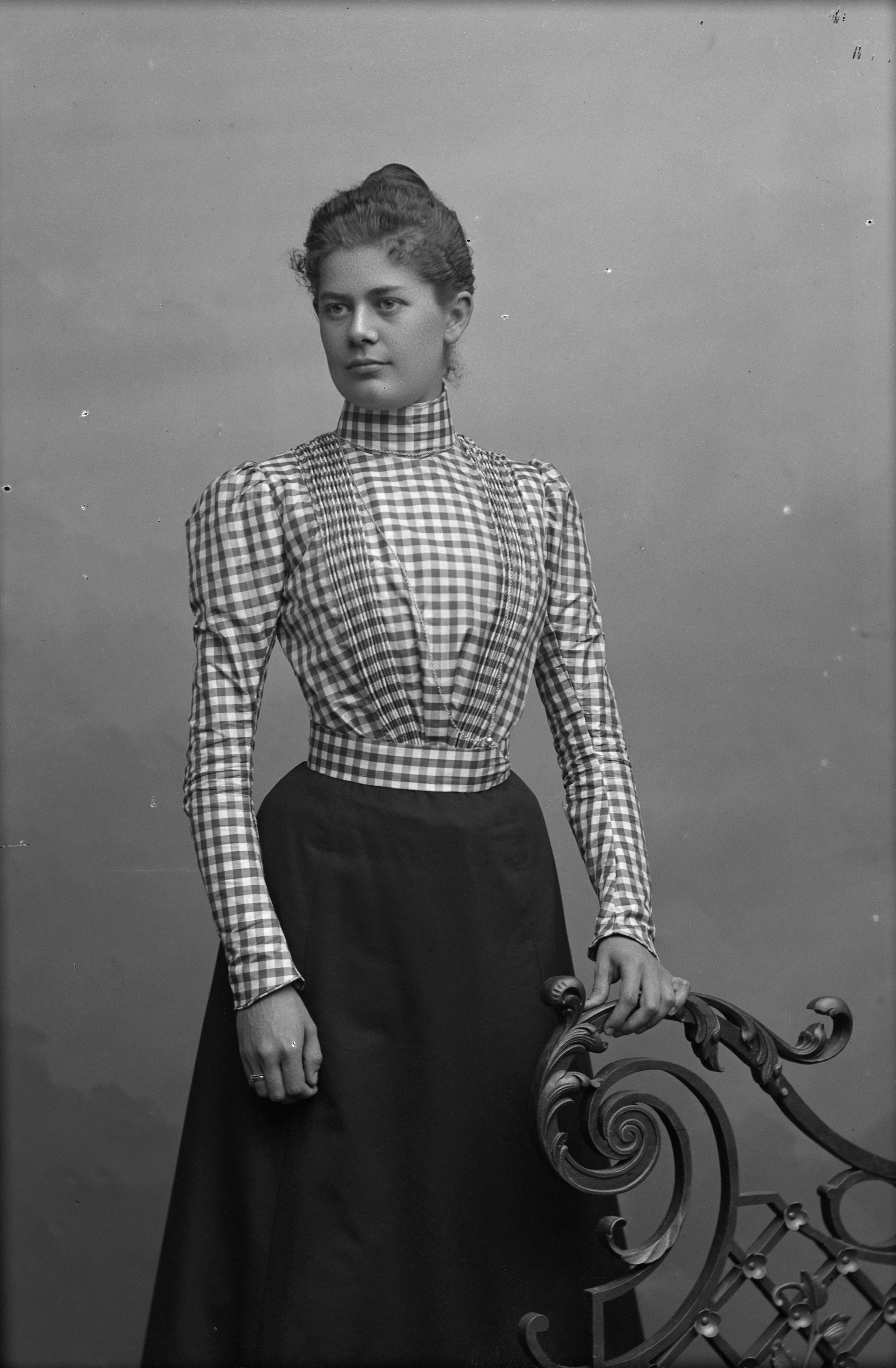 Porträtt i helfigur av Elin Winberg, kassörska vid Telegrafverket.