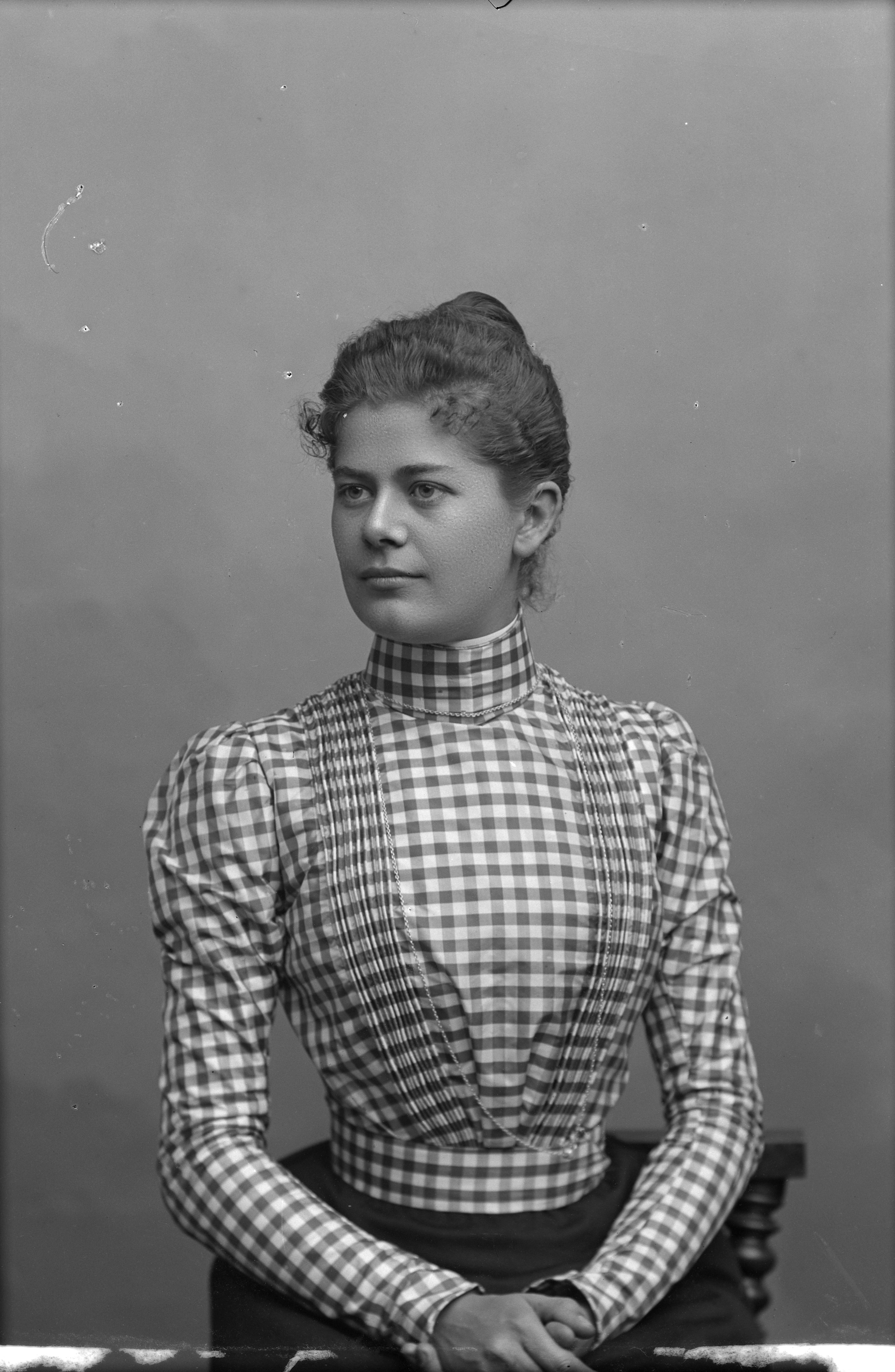 Porträtt i halvfigur av Elin Winberg, kassörska vid Telegrafverket.