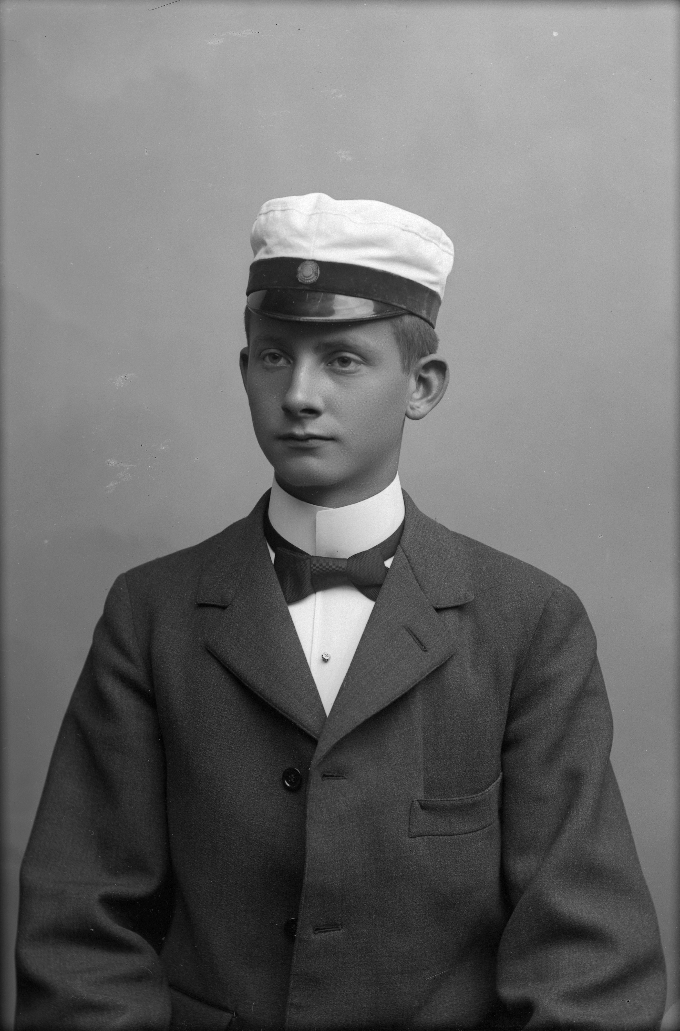 Porträtt i halvfigur av N. Borgquist, iklädd studentmössa.