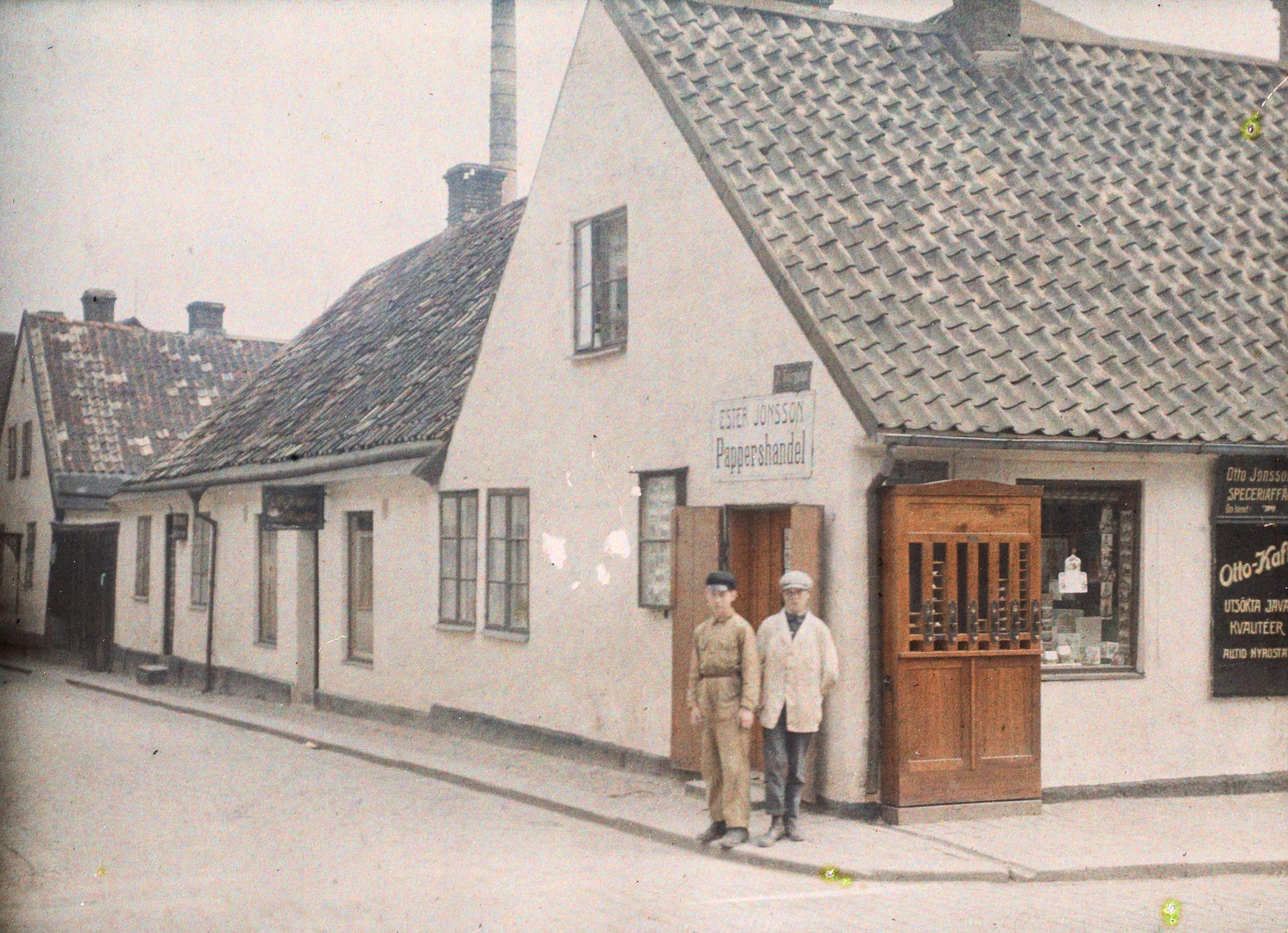 Gatubild - Ester Jonssons pappershandel och Otto Jönssons speceriaffär.