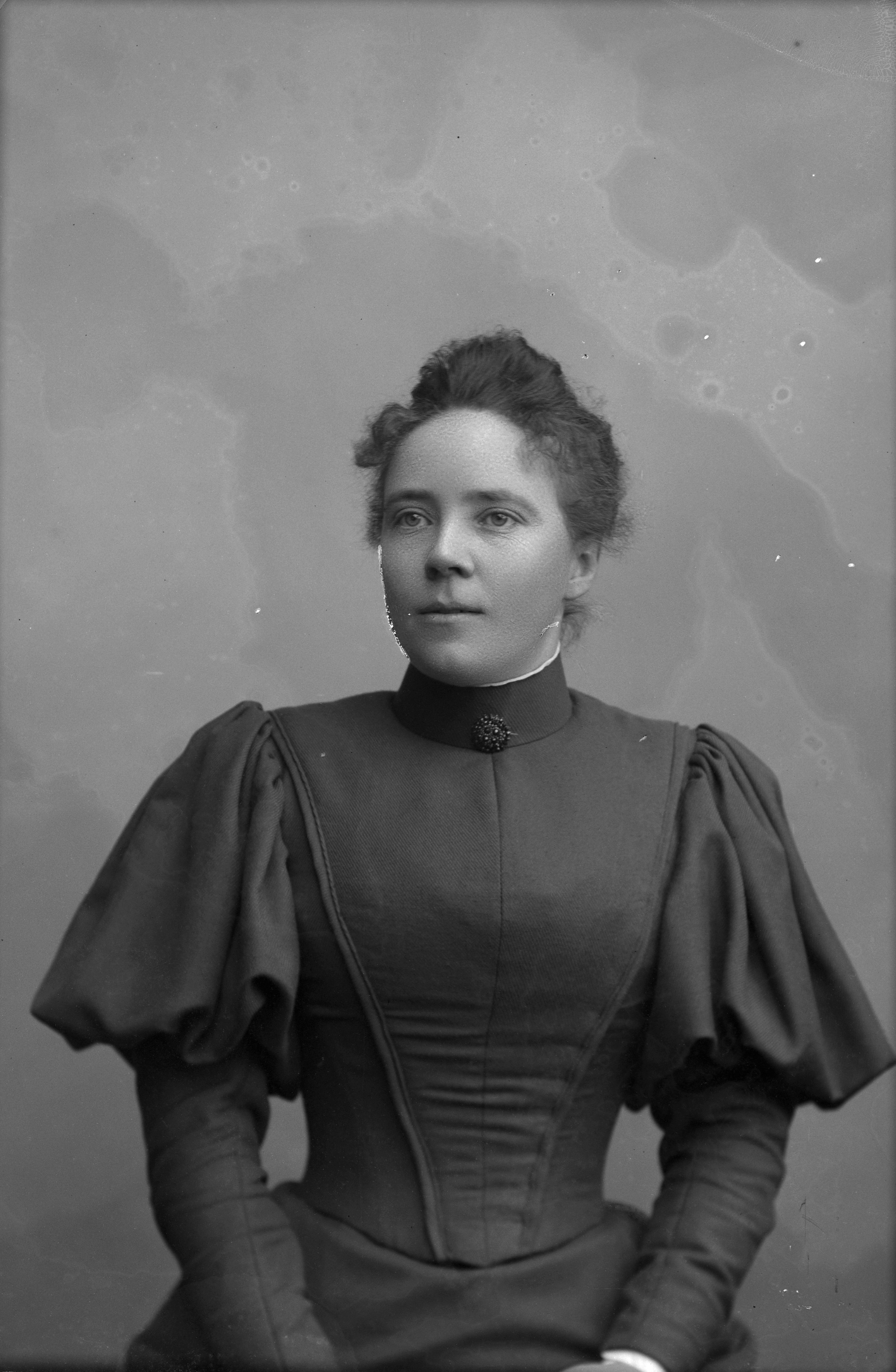 Porträtt i halvfigur av telefonisten fröken Jönsson.