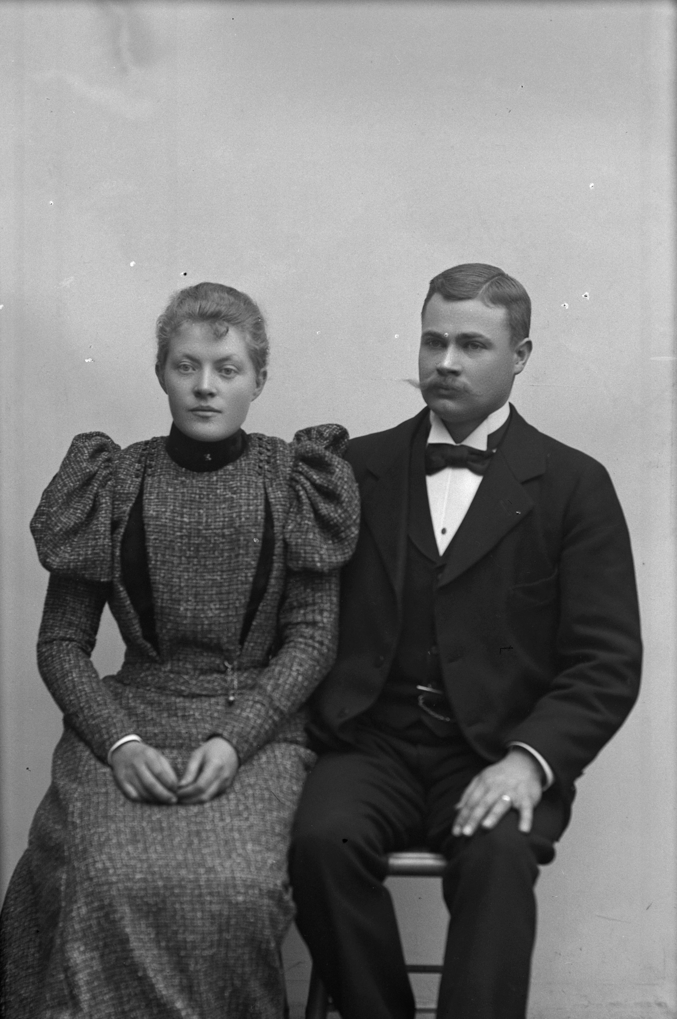 Porträtt i helfigur av handelsresande L. Persson med fru.