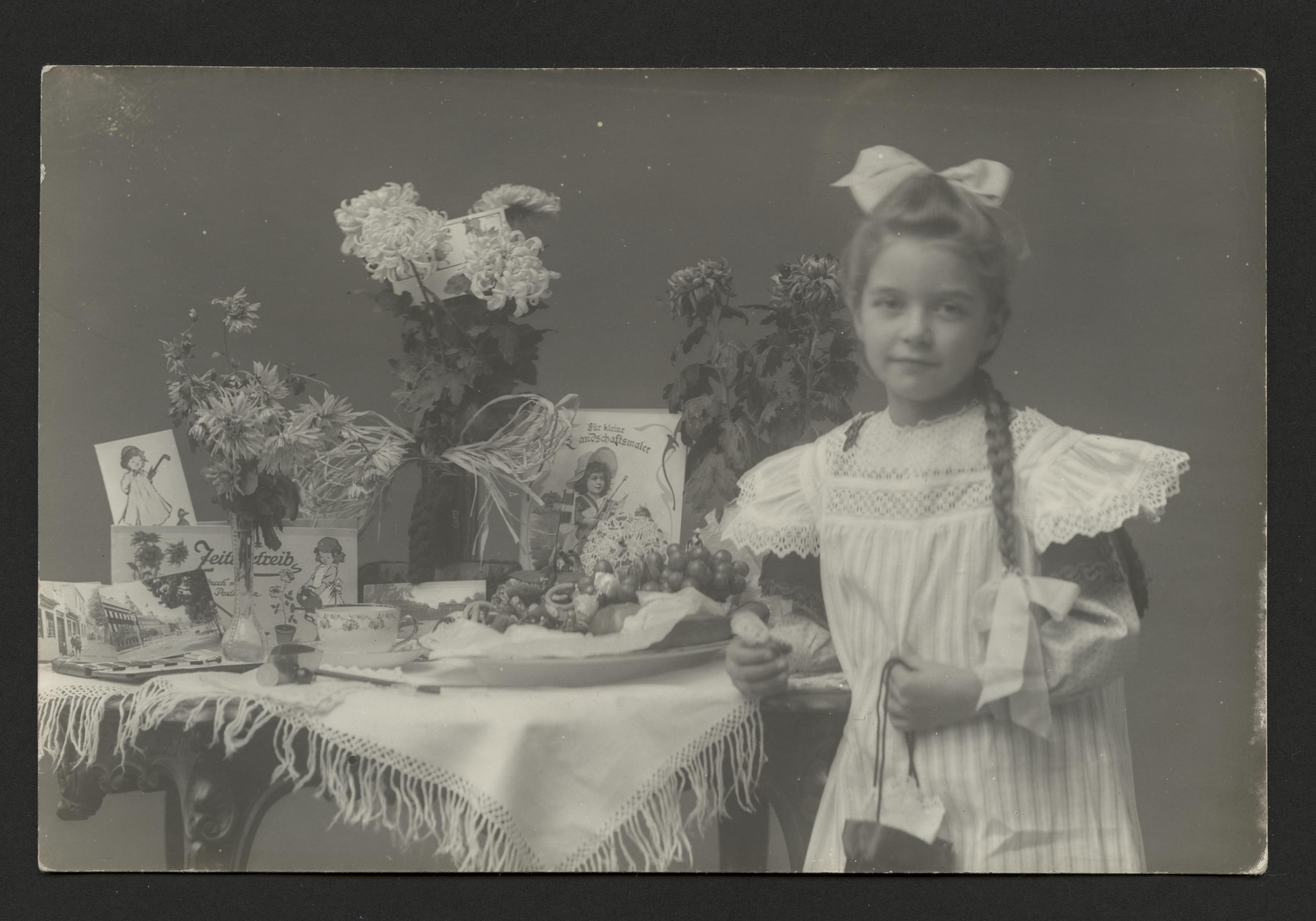 MM 062016:027:002 :: födelsedag, blommor, barnporträtt, födelsedagsgåva, flicka, fläta
