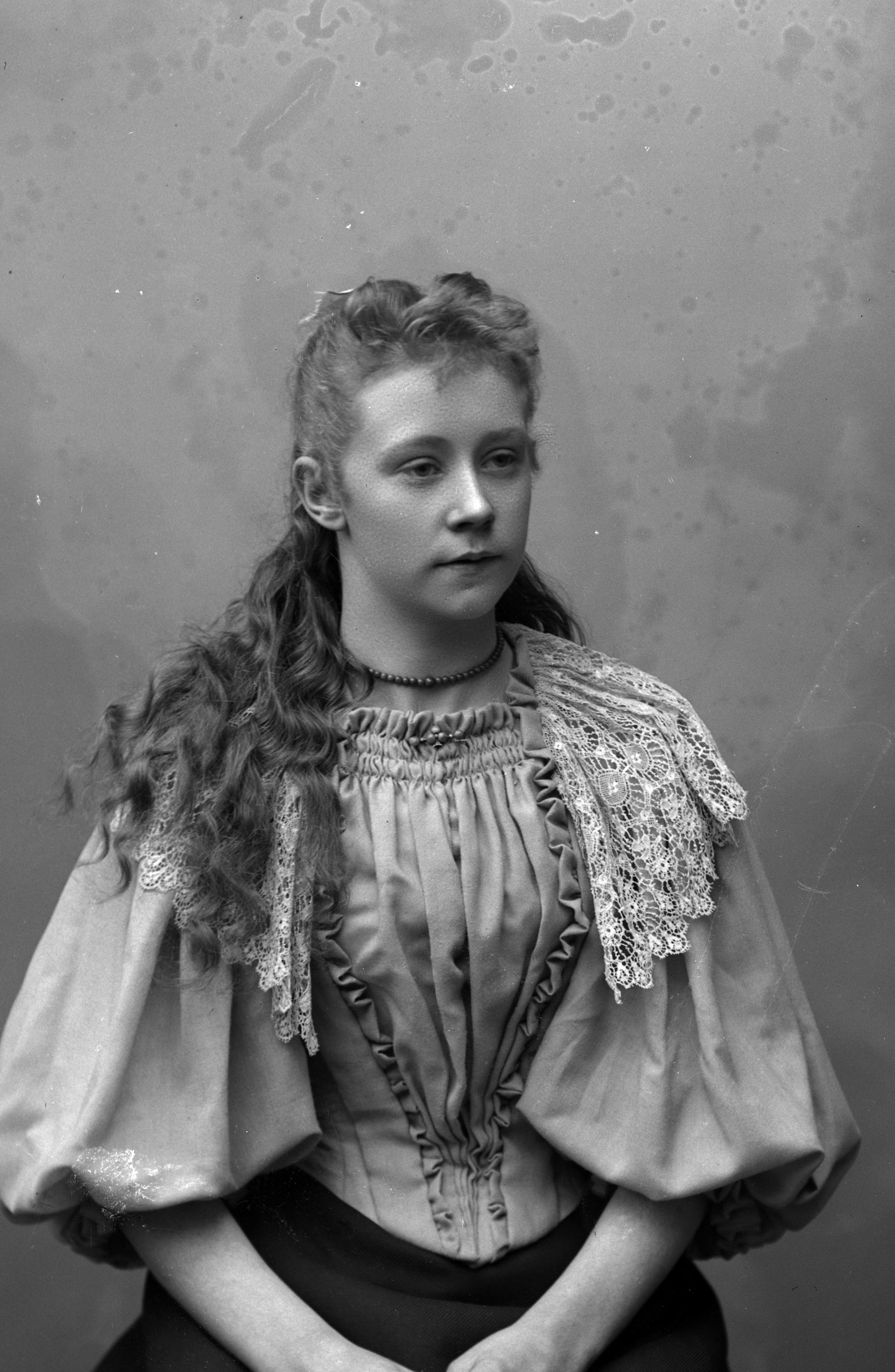 Porträtt i halvfigur av baderskan Maria Sjöberg.