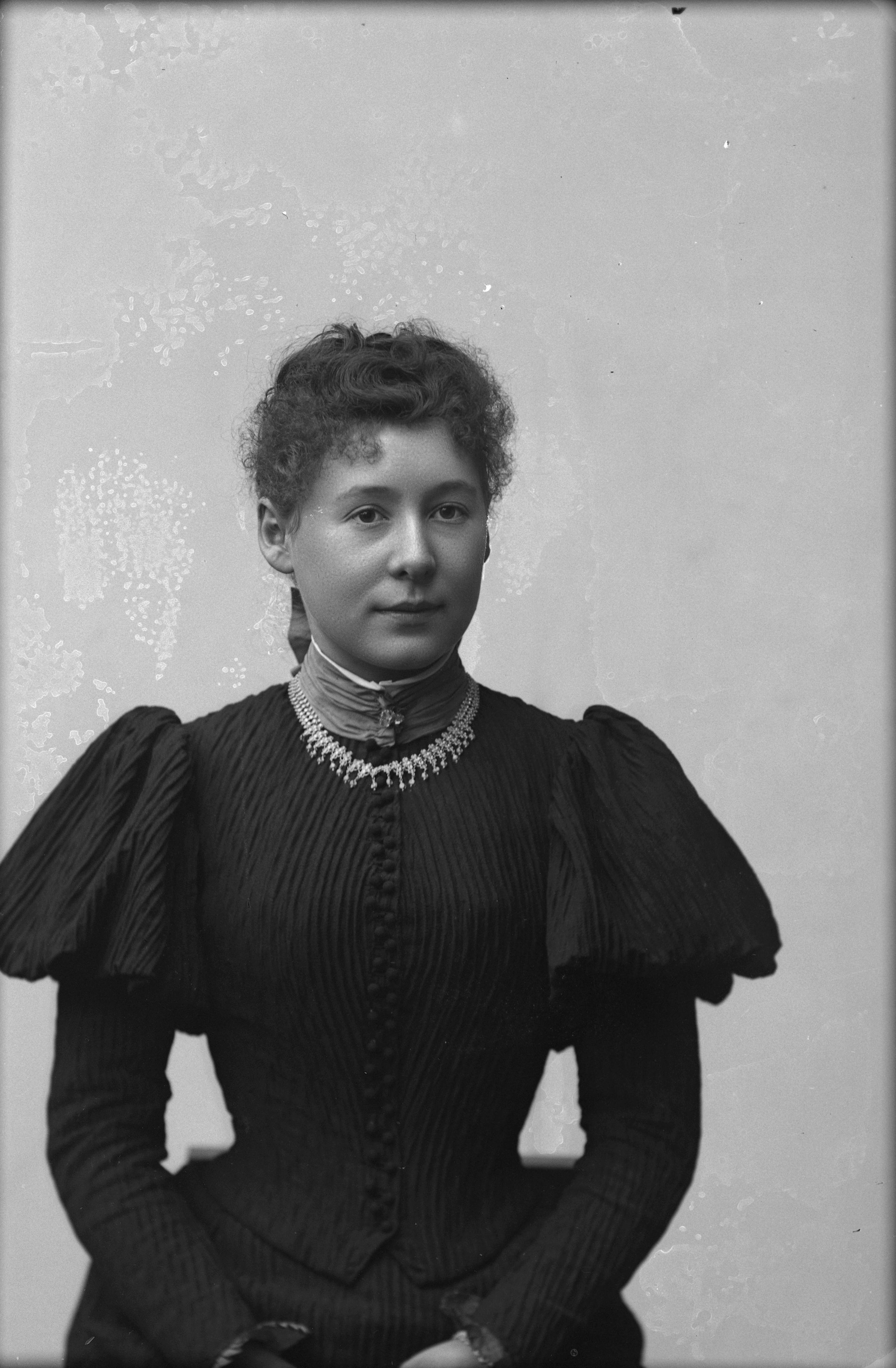 Porträtt i halvfigur av Hulda Hansson vid Fabriks AB Skandinavien.