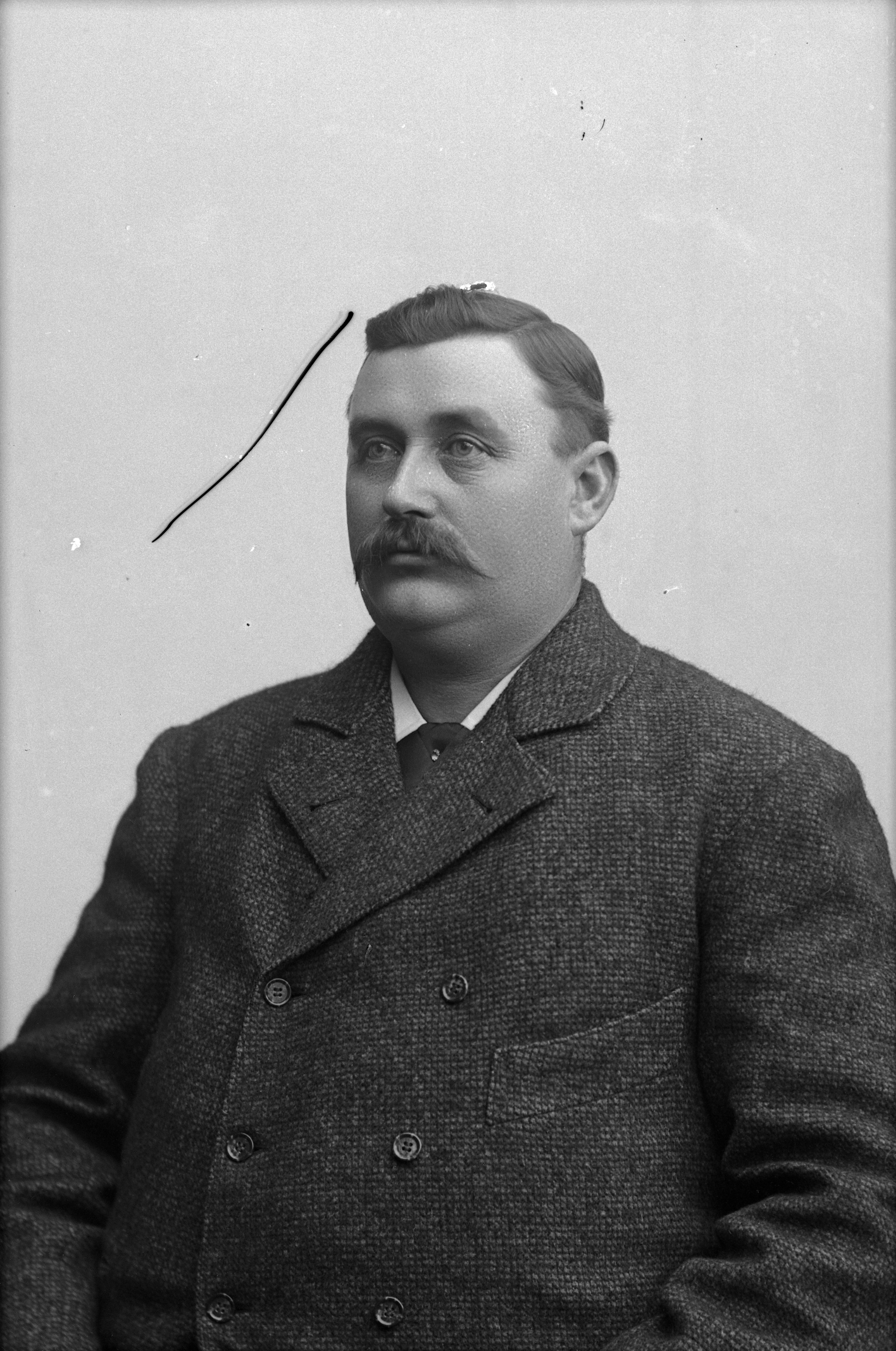 Porträtt i halvfigur av slaktare Bengtsson.