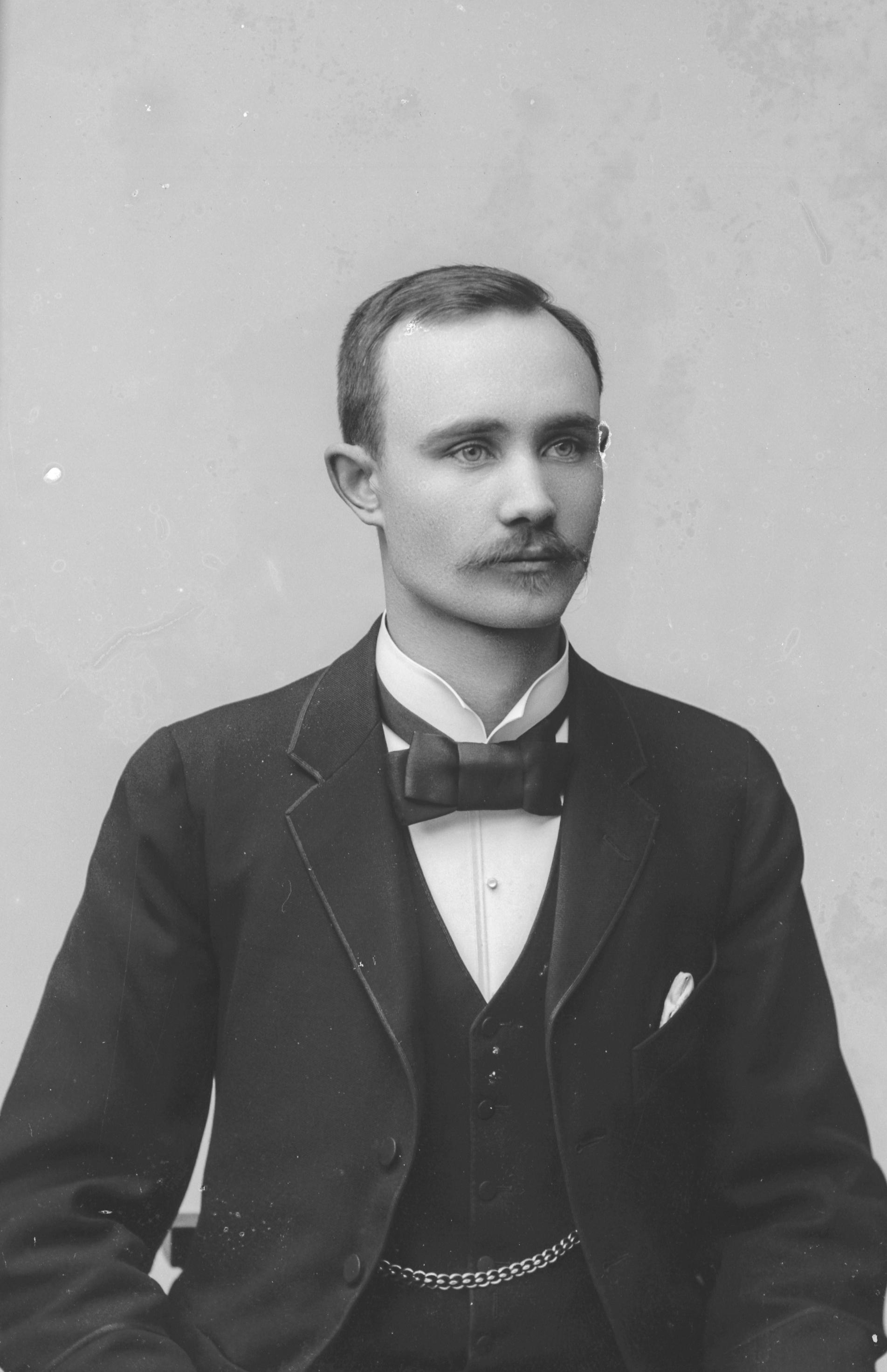 Porträtt i halvfigur av L. Frohm, verkstadsanställd vid Humber & Co.