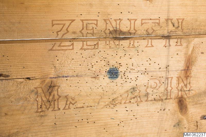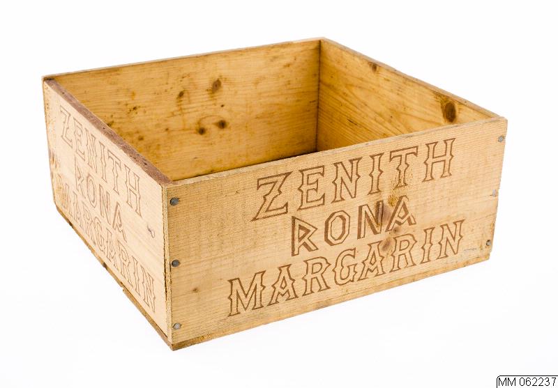 Trälåda, text på sidorna: Zenith Rona Margarin