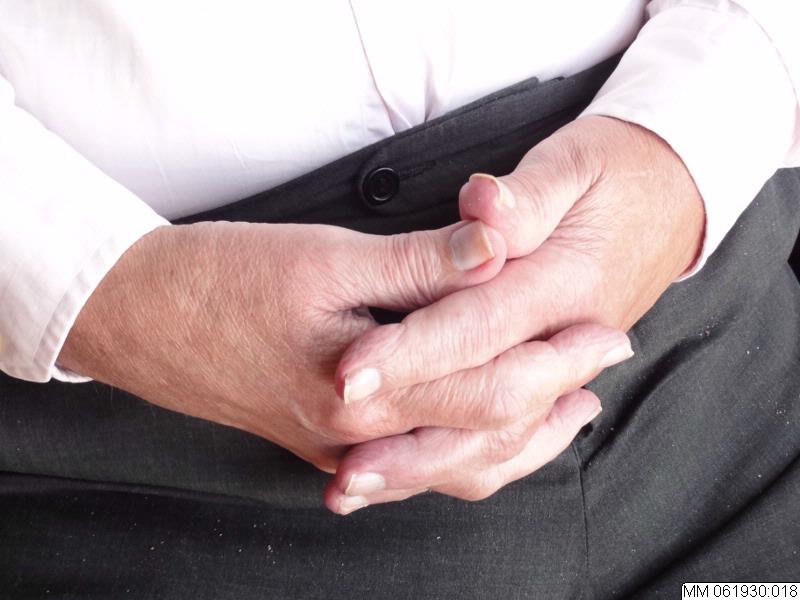 Bild på Jan Klingströms (född 1927) händer på Päronskogens vårdboende.