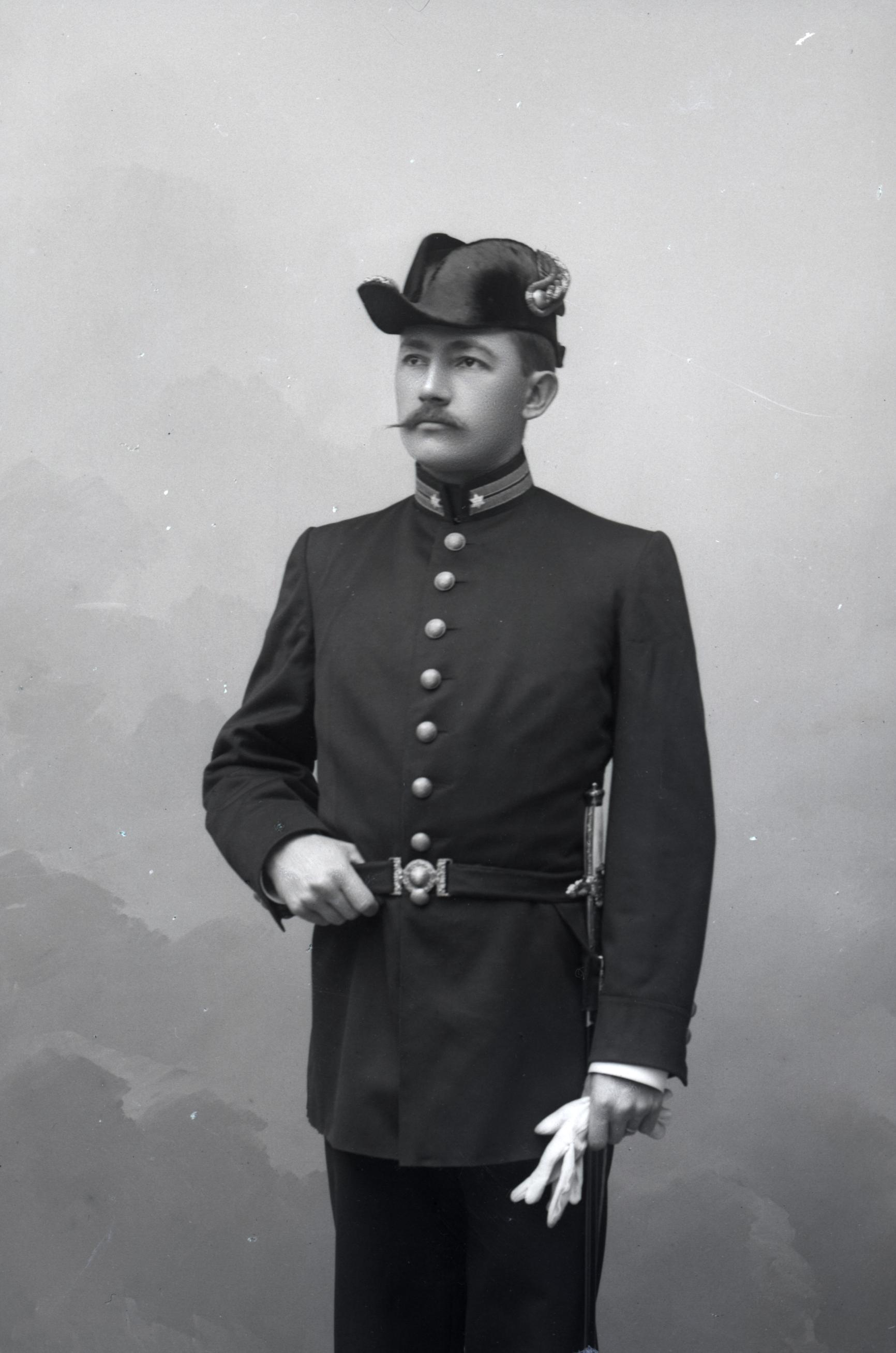 Porträtt i helfigur av Viktor Gjörloff, kammarskrivare vid tullen, iförd tulluniform.