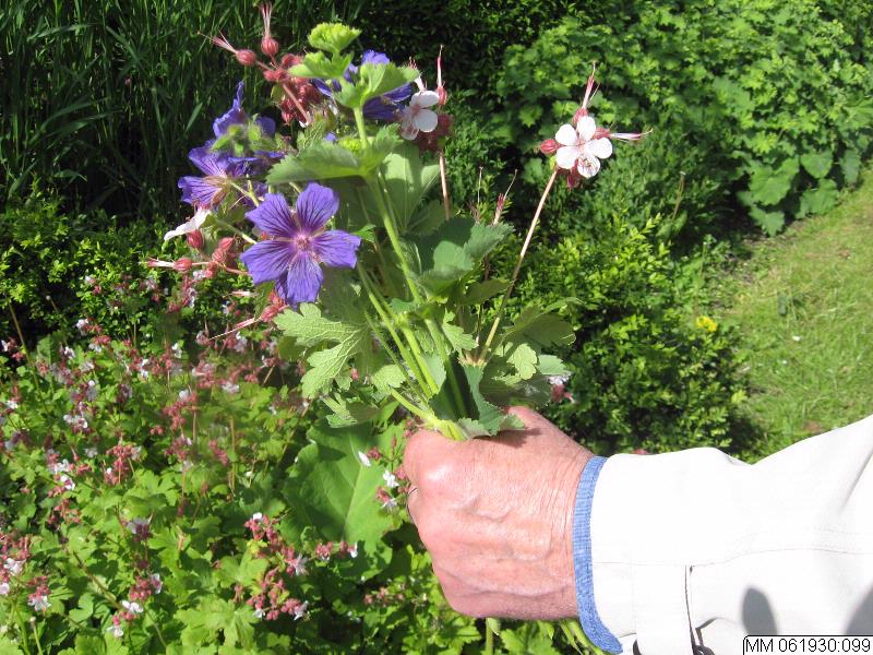 MM 061930:099 :: blommor, trädgård, hand, blombukett