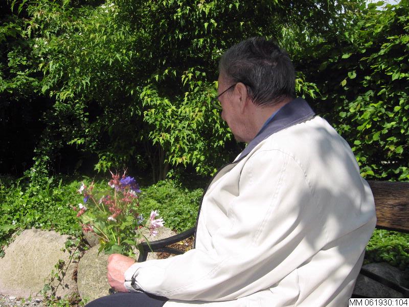 MM 061930:104 :: blommor, trädgård, man, blombukett