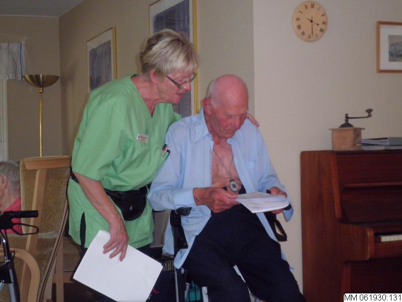 Dokumentation av Margreth Wedins arbete och på vårdboendet Danska vägen i Malmö, här med Erik Persson under en liten sångstund.