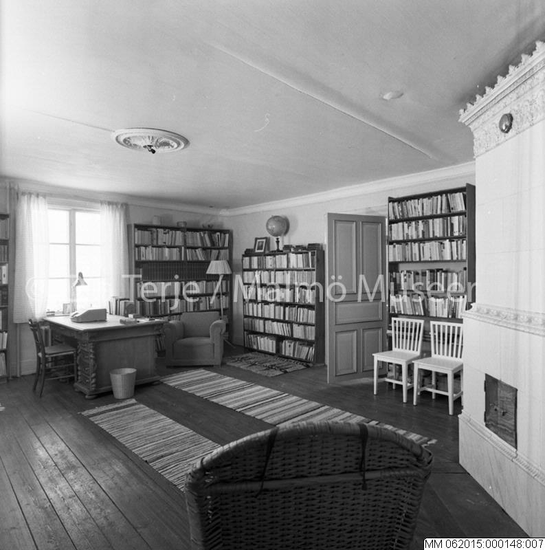MM 062015:000148:007 :: bokhylla, kakelugn, skrivbord