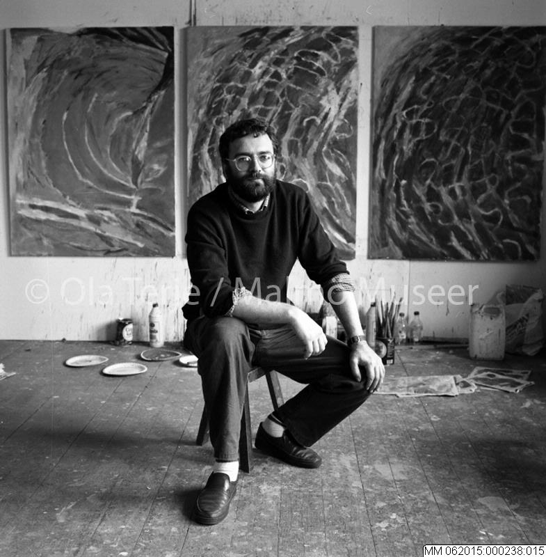 Gert Aspelin (född 1944) sittande i ateljé. 19901009.