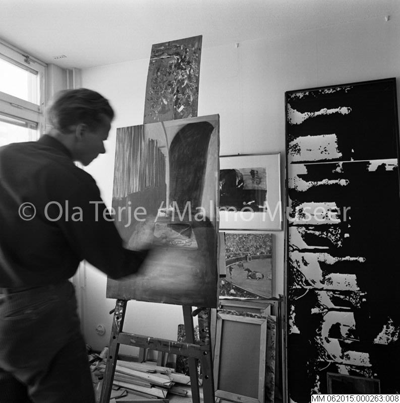 Ola Billgren (född 1940) målandes i sin ateljé. 19670108.