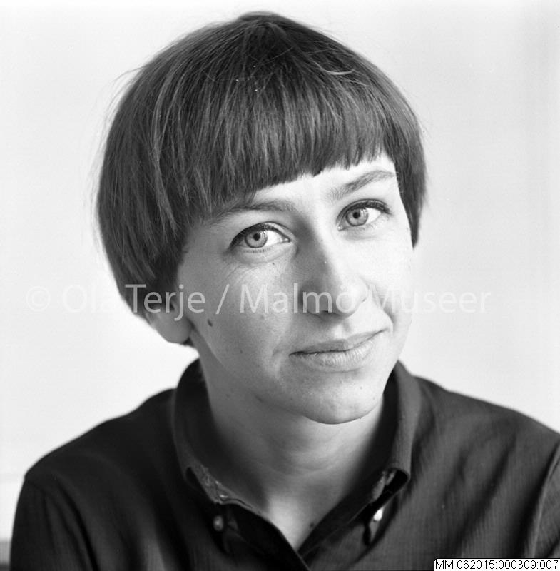 Porträtt av Barbro Bäckström (född 1939). 670423. Bilden är tagen i projektet "I Närbild" som gjordes på uppdrag av Skånes Konstförening.