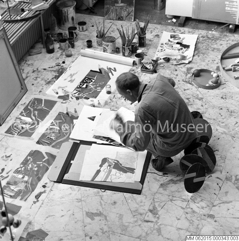 Jörgen Fogelquist (1927-2005) arbetandes i ateljé. 661218.