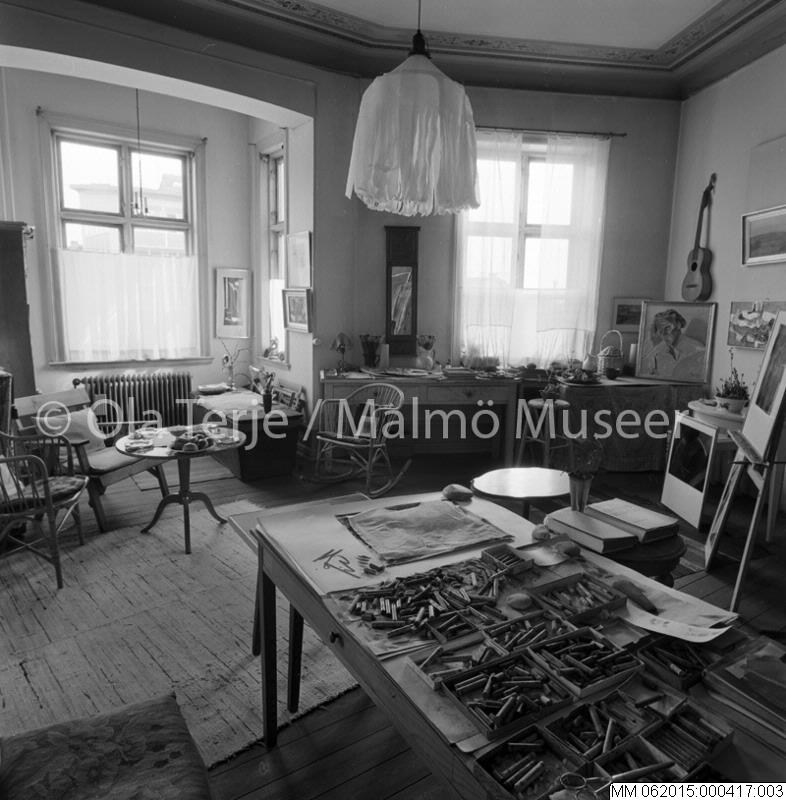 Rumsinteriör. Tora Vega Holmström. 620812. Bilden är tagen i projektet "I Närbild" som gjordes på uppdrag av Skånes Konstförening.