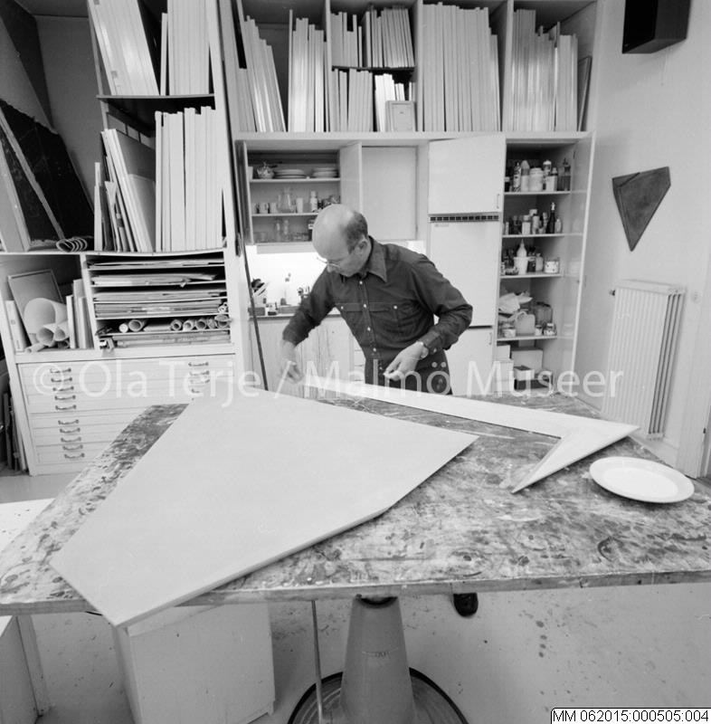 Carl Magnus (född 1943) arbetande i ateljé. Bilden är tagen i projektet "I Närbild" som gjordes på uppdrag av Skånes Konstförening.