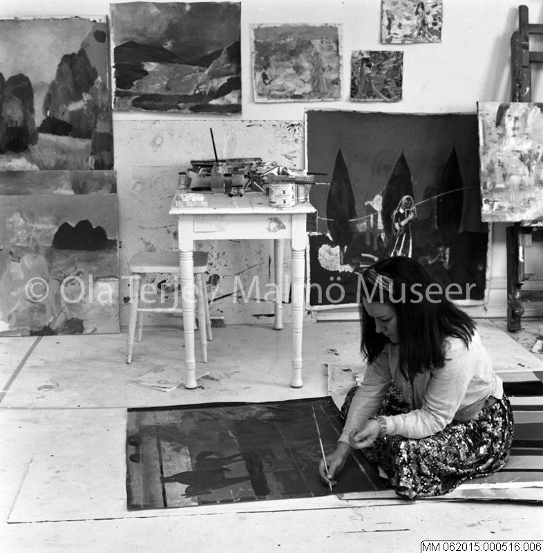 Tamara Malmeström (född 1951) arbetande i ateljé. 860801?