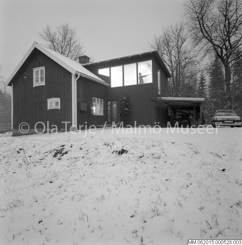 Konstnären Stig Morin i ateljén, sett utifrån, 861215.