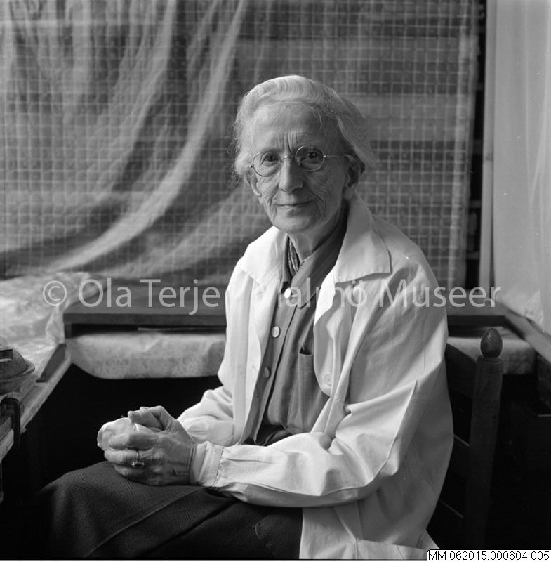 Grafikern Karin Persson (1891-1971) i ateljén, 2/3 1968.