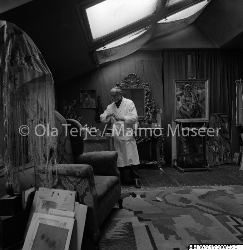 Konstnären Jules Schyl (1893-1977) i ateljén, 12/11 1966.