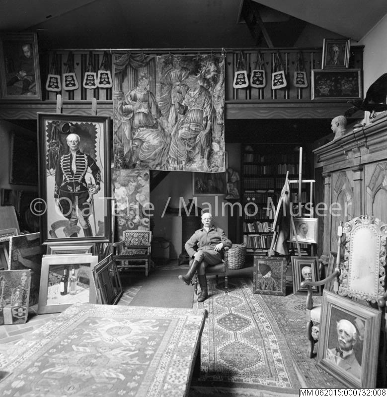 Konstnären Jonas Åkesson (1879-1970) i ateljén, 1963.
