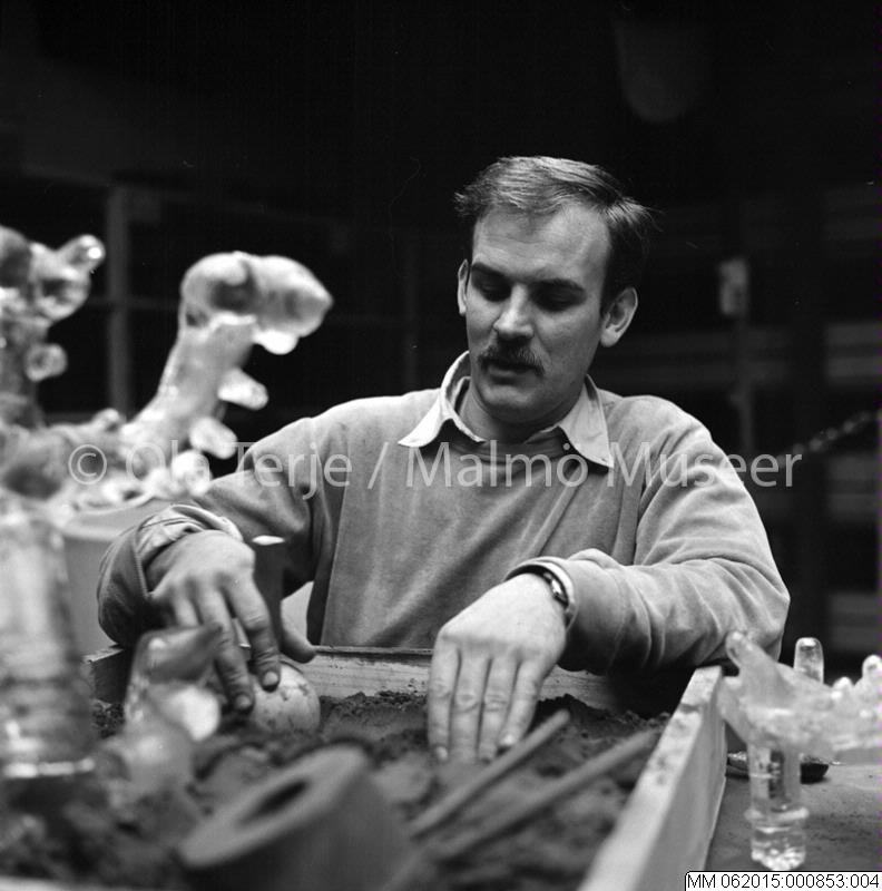 Bertil Vallien med sin glaskonst, Åfors, 12/10 1968.