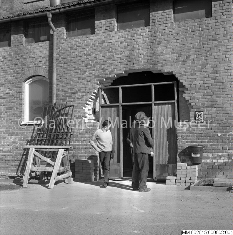 Exteriör, entrén, Åfors glasbruk, april 1969.
